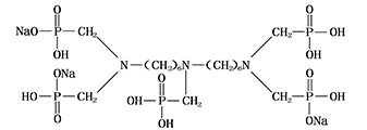 別名:二己烯三胺五亞甲基膦酸鈉 分子式:C17H44-xO15N3P5Nax 相對分子質量:約731 結構式: